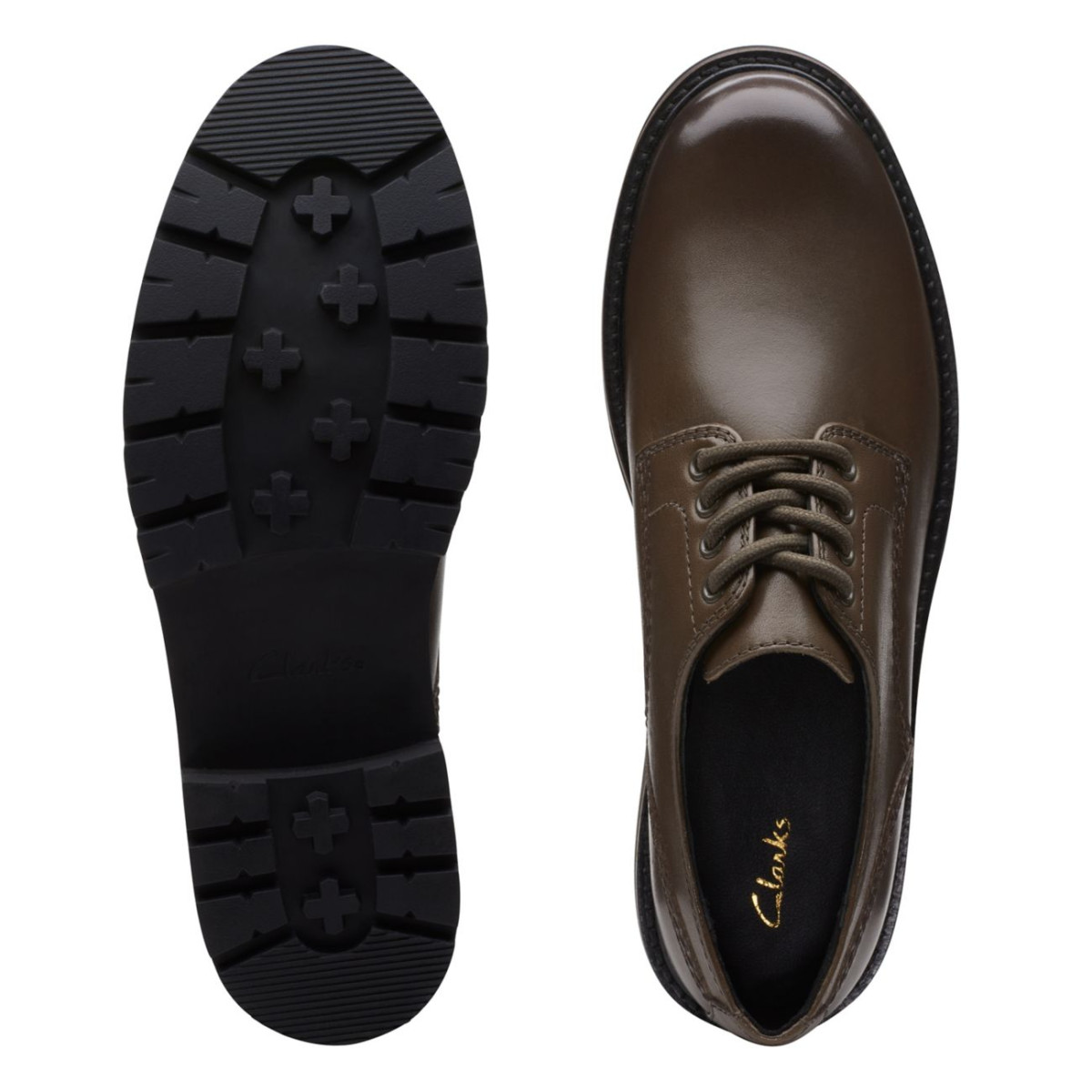 A super-chunky sole is the on-trend finishing touch to dark olive leather lace-up Orianna Derby. Perfectly balancing style and practicality, this of-the-moment profile is prepped for all-day wear - from its grippy sole to lasting underfoot cushioning. Complete with minimal side stitching for an authentically crafted aesthetic.