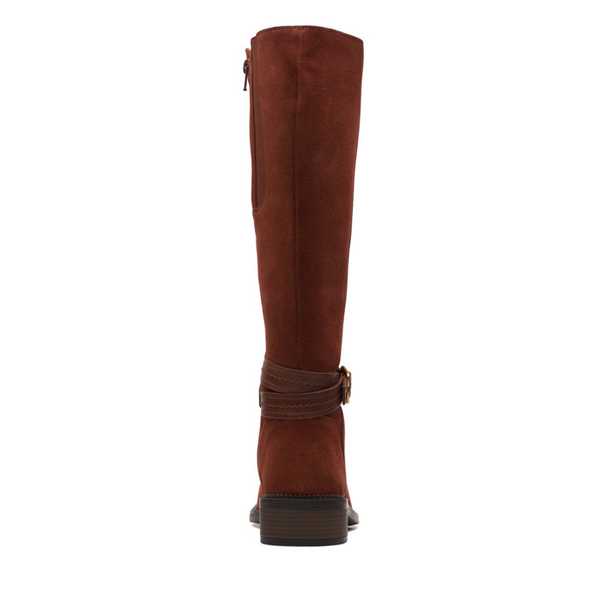 A closet classic with lasting comfort, meet Maye Shine - our all-new knee high boot. With a dark tan suede upper, its handy side zip makes it easy to pop on, while our Ultimate Comfort footbed keeps you light on your feet. With statement strap detailing and set on a grippy sole, tackle the busiest of days in style and confidence.