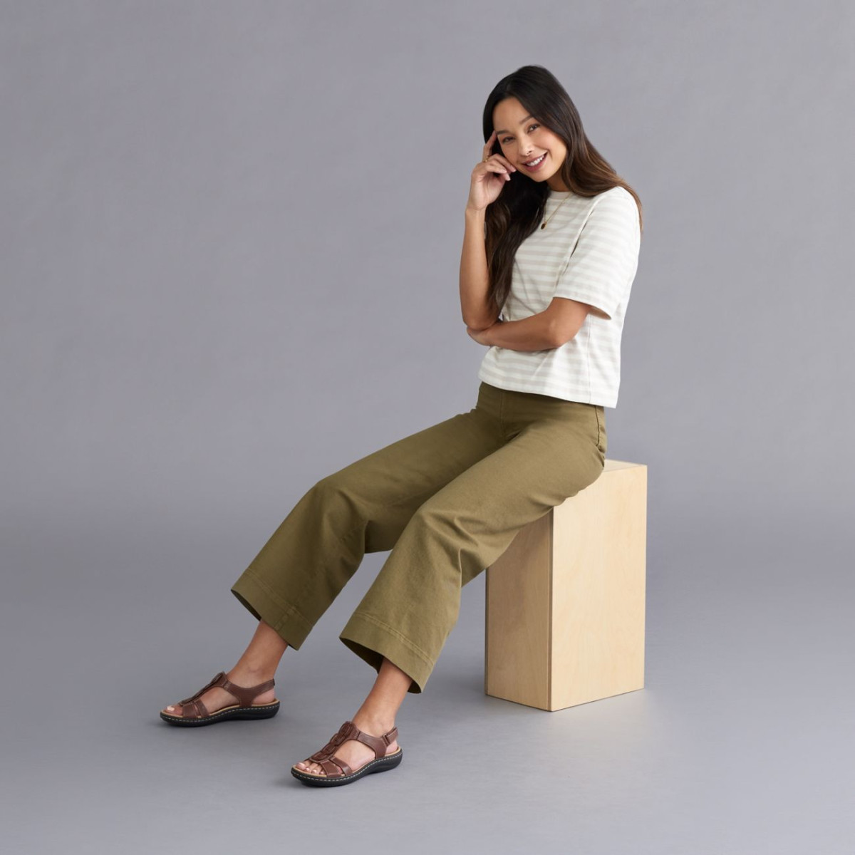 With its underfoot comfort and captivating new materials, the Laurieann is a casual sandal that can be worn from day to night and dressed up or down. An essential classic.