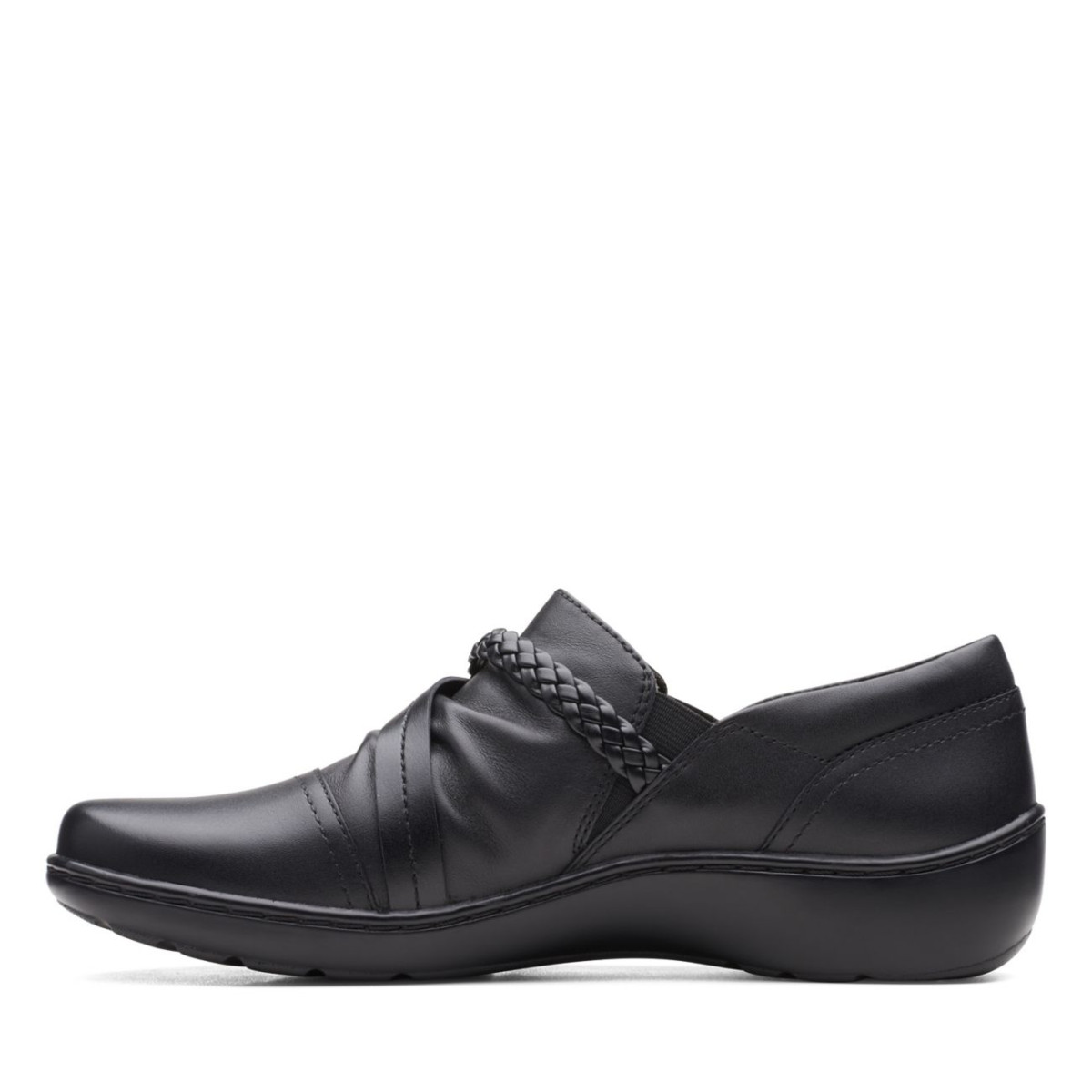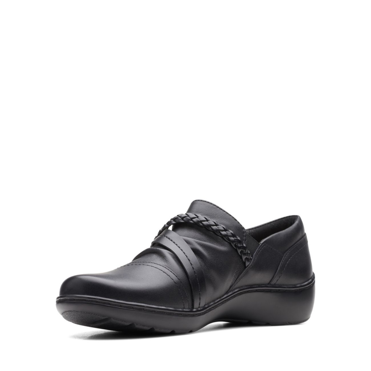With rich black leather wrapping the foot, and a stylish plaited detail, Cora Braid Shoe elevates the everyday casual look with its sleek aesthetic. A moulded Cushion Feel™ footbed absorbs impact and massages the foot with every step to deliver on comfort, and the flexible and grippy lightweight sole gives a subtle sporty touch.