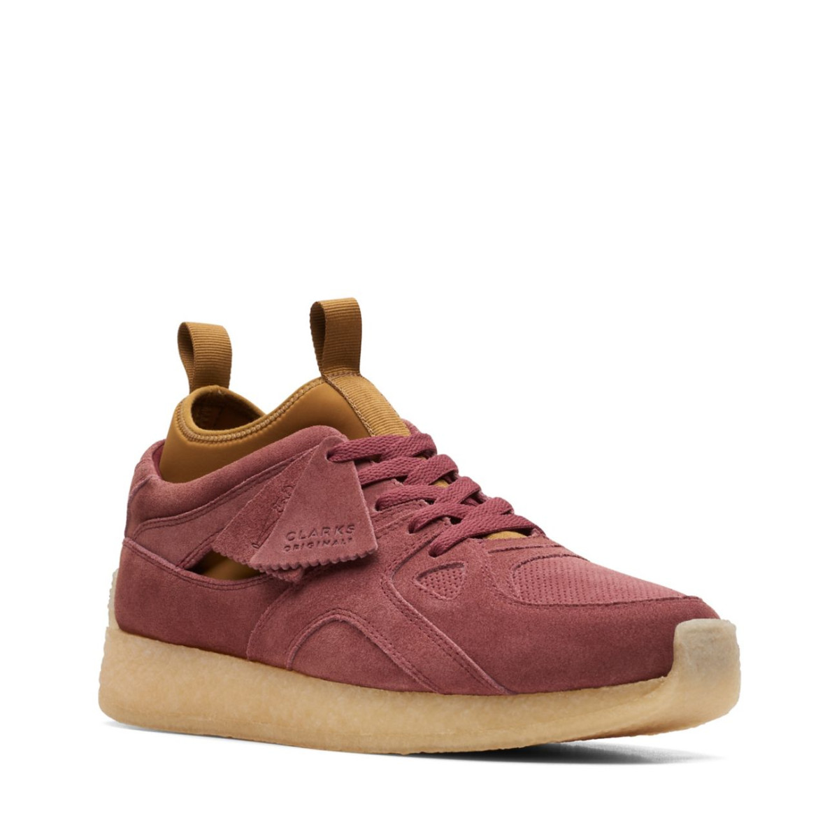 Kith founder Ronnie Fieg joins forces with Clarks Originals for another addition to the 8th St collection. With a trail runner aesthetic inspired by Breacon national park, vintage-style sneaker Breacon combines Oxblood/oakmoss suedes with a natural pebble crepe sole. A micro-perforated vamp enhances this sneaker’s heritage athletic aesthetic.