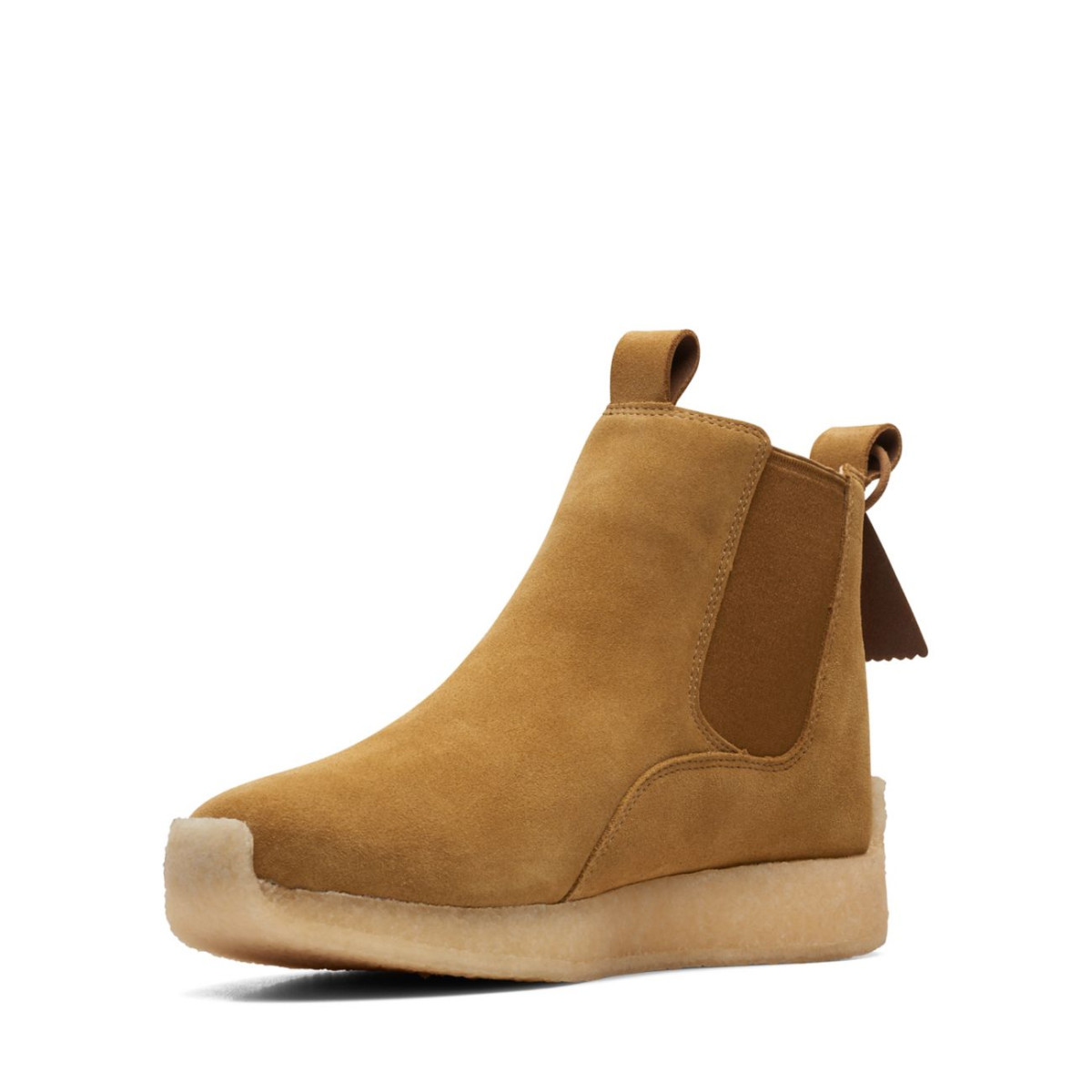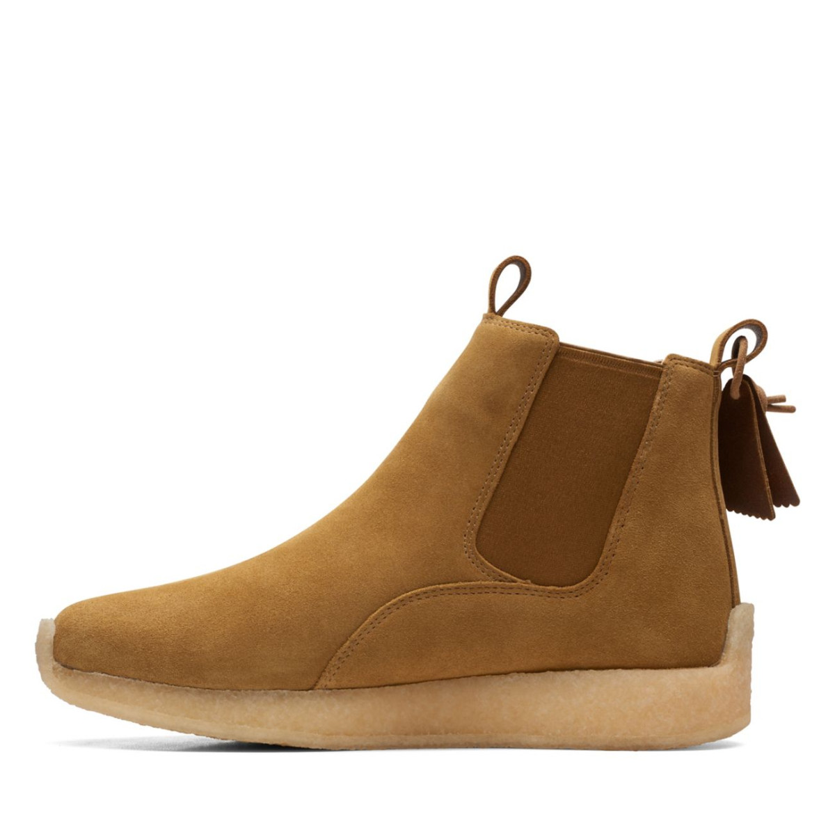 Kith founder Ronnie Fieg joins forces with Clarks Originals for another addition to the 8th St collection. Channelling the elegant feel of the Radlett neighbourhood near London, Chelsea boot-inspired Radlett combines rich, oakmoss suede with a contrasting, natural pebble crepe sole that wraps around the toe and heel for a contemporary feel. Debossed Trek Man details and Tor designs add a heritage touch.