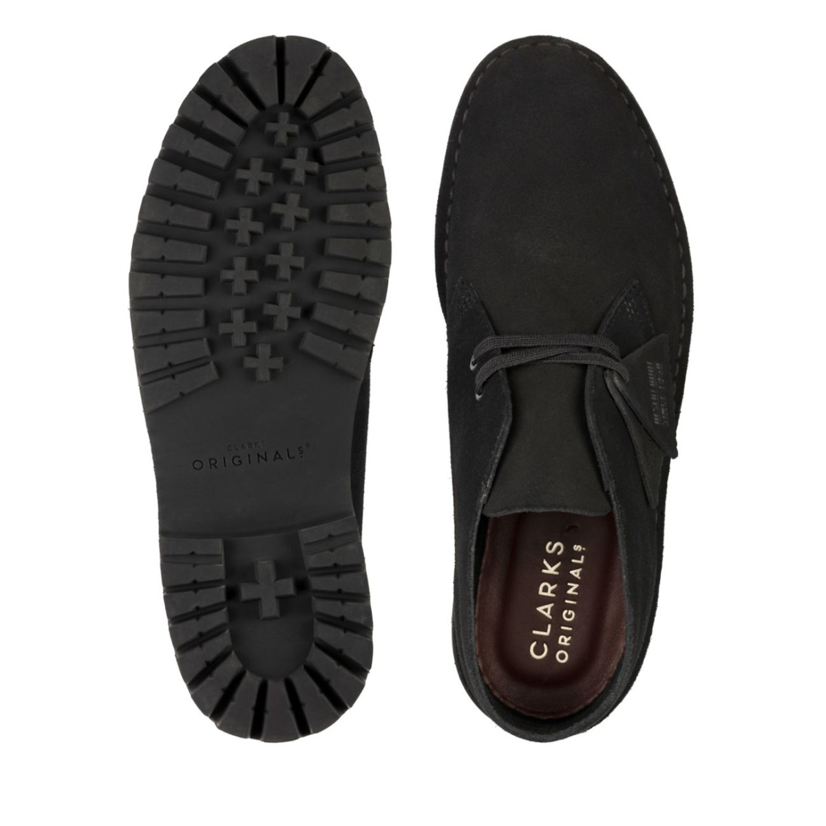 An iconic design from the Clarks Originals archives, the Desert Trooper is reintroduced a decade on with a cozy update. Desert Rock uses distinctive Stead’s Bronto black suede teamed with a rubber cleated sole and signature stitch-down construction, for a classic look and improved grip. Sheep-leather lining and a cushioned eco-foam footbed assure total comfort, and an additional matching elastic lace delivers an exceptional fit for the winter season.