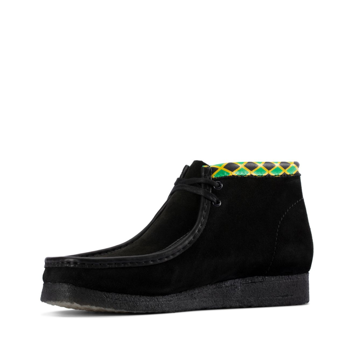Since our Wallabee Boot first hit the streets of Kingston, it has occupied a truly special place in Jamaican culture. We’re celebrating this unique connection to the island with a limited-edition new Wallabee style, Jamaica Bee, which sees a bold, heritage pattern inspired by the Jamaican flag adorn the ankle trim, heel and footbed of this classic black suede silhouette. The premium upper and custom fob feature a subtle design of the legendary Trek Man while colored aglets on its laces make this shoe feel extra vibrant. All enhancing its signature moccasin construction, our pioneering pair becomes a new icon that pays homage to the individuality Jamaica is so famous for.