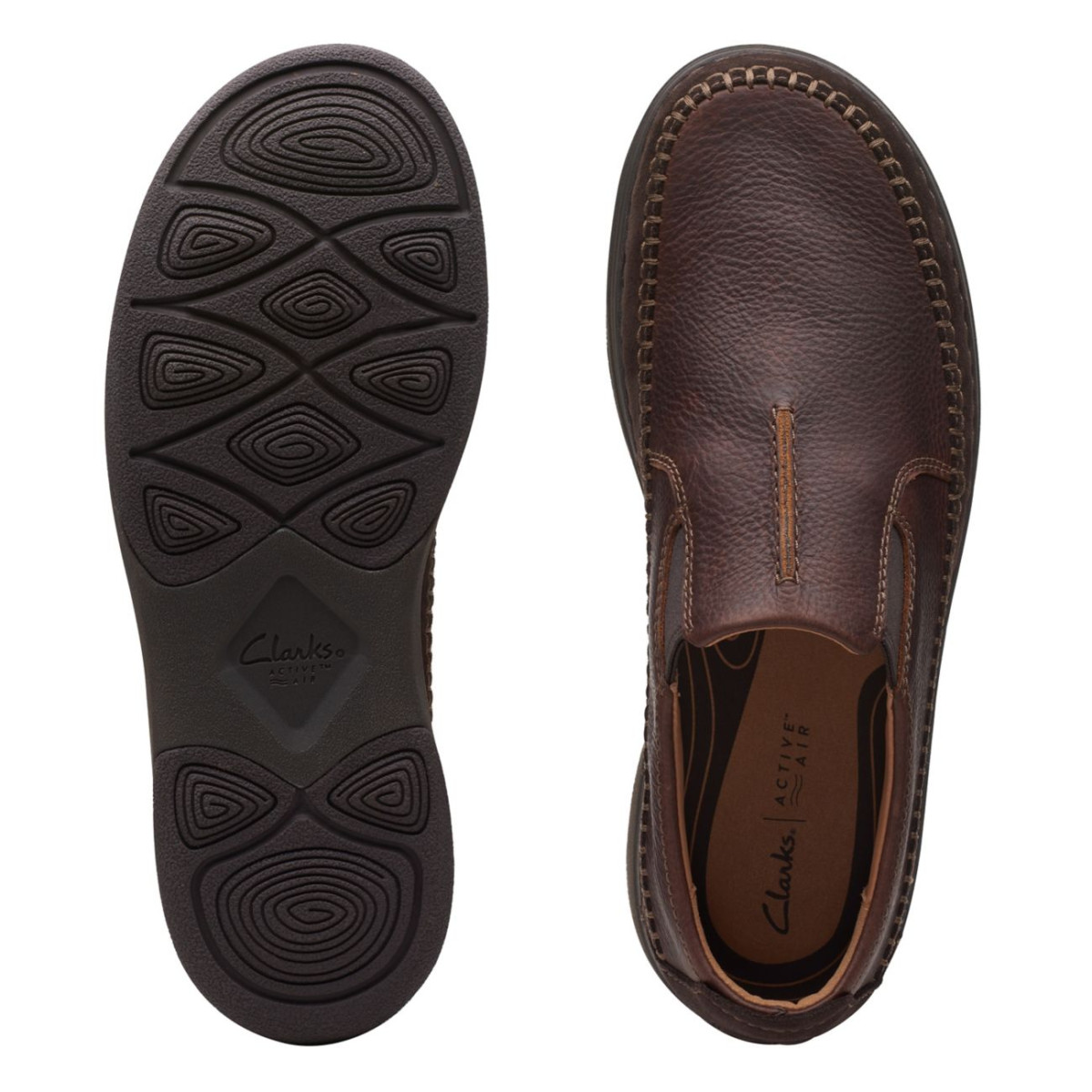 The last word in comfort, our Nature 5 Walk shoe blends a casual silhouette with modern technologies. Active Air™ cushioning uses unique motion-powered pods that activate with every flex of the foot, keeping feet fresh and comfy all day. A nod to Clarks heritage design - crafted stitching on the dark brown upper and flecked rubber sole add character to this everyday slip-on.