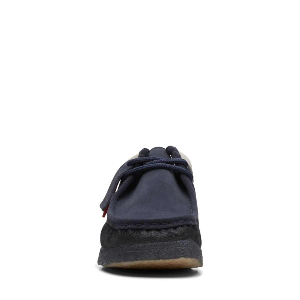 An understated addition to our Sashiko pack, the denim blue Wallabee is embellished with subtle Japanese embroidery and a matching painted crepe sole for a sleek, tonal silhouette. Completed with a blossom-printed sock liner and grosgrain heel tape, creating a crafted and casual feel.