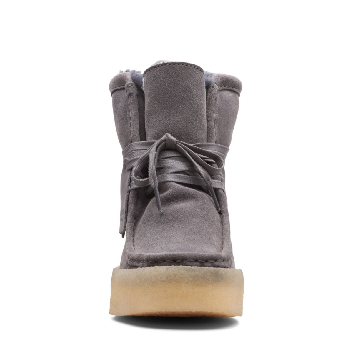 A super-flexible boot with comfort at its core, our Wallabee Cup Hi returns in new soft grey suede. Equipped with the softest faux fur lining and a statement thick cupsole for feel-good autumn/winter wear.