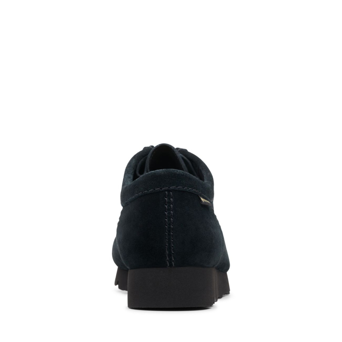 Our Wallabee GTX in black suede is an iconic profile that’s fully prepped for the outdoors. A chunky, cleated Vibram® sole gives durable wear and a rugged aesthetic, together with webbing tape and GORE-TEX® technology for protection against the elements. A woven GORE-TEX® label and embossed fob branding add style appeal.