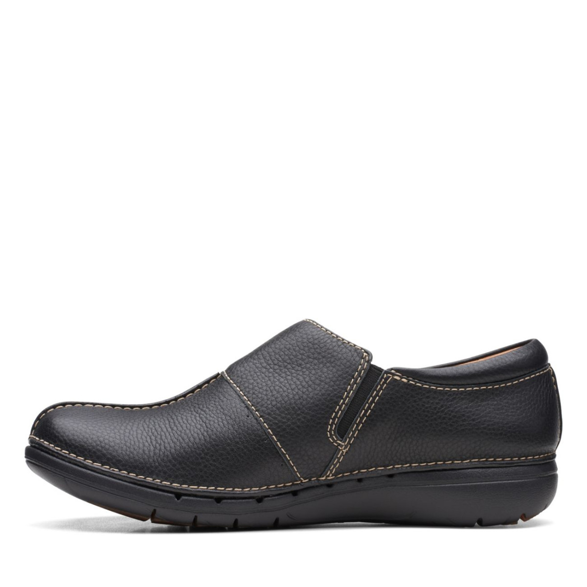 Keeping busy feet comfy when they need it most, meet our Un Loop Ave slip-on shoe. In responsibly sourced black leather for a premium feel, crafted stitching gives a heritage look, while its airy sole and leather lining keep steps light and free. The work to weekend pair you can always count on.