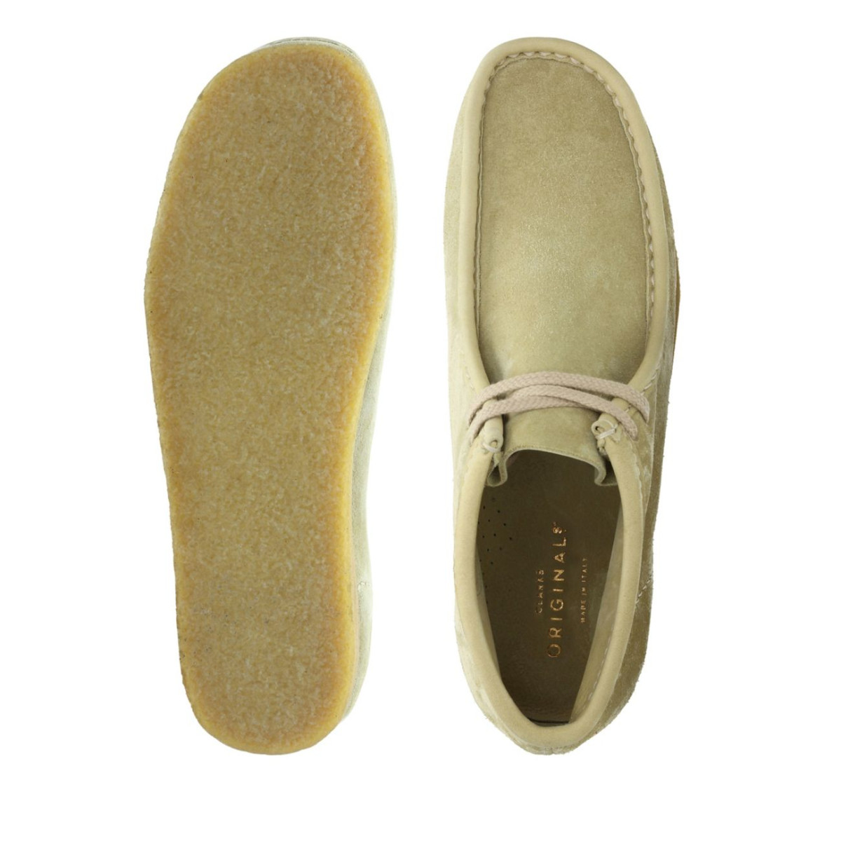 The iconic Clarks Wallabee Boot, faithfully made with a soft suede upper and a genuine crepe outsole. Its leather lining and sockliner surround the foot in soft comfort, and an airy EVA midsole lightens its weight. Pairs effortlessly with jeans and a top for a fast, no-fuss look.