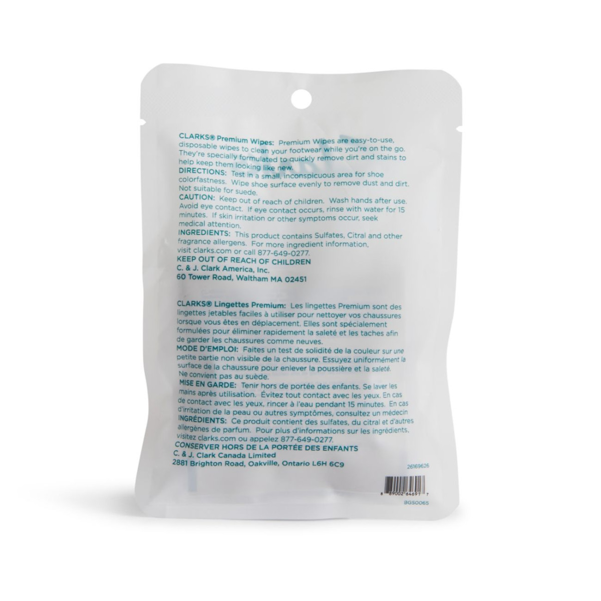 Individually packaged to offer quick & convenient way to keep your footwear looking their best. Removes dust and dirt from footwear surface and soles. Includes 3 disposable wipe packets in each pouch.