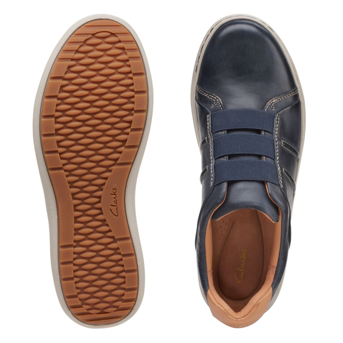 - Responsibly sourced navy leather upper