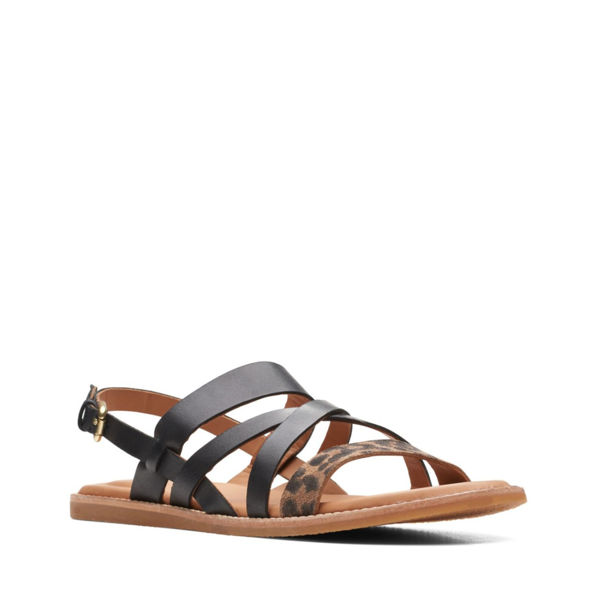- Responsibly sourced black leather and leopard print suede upper