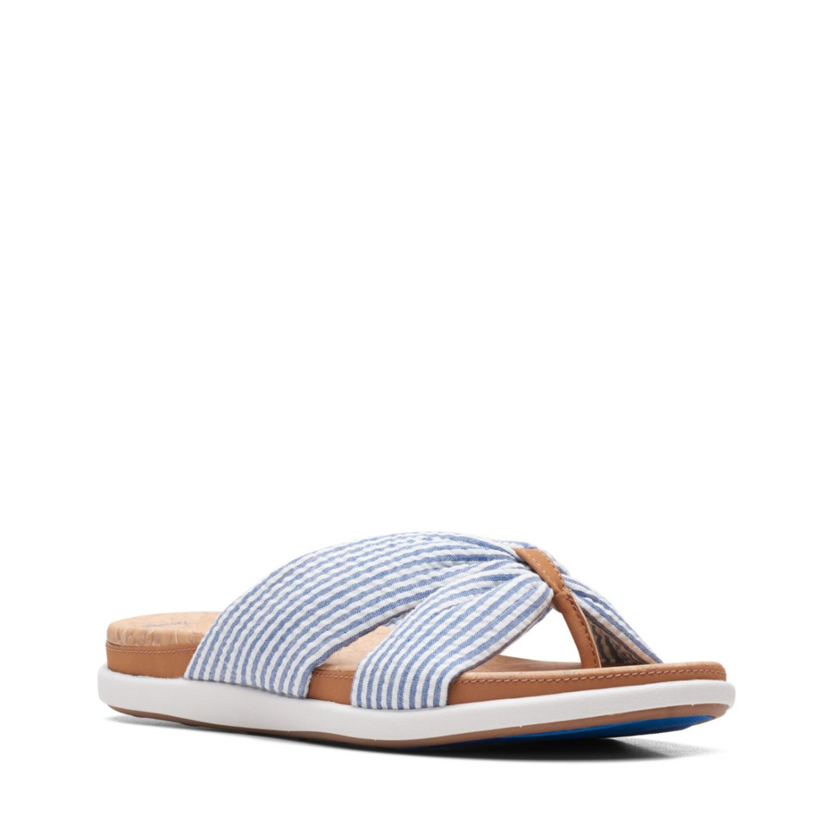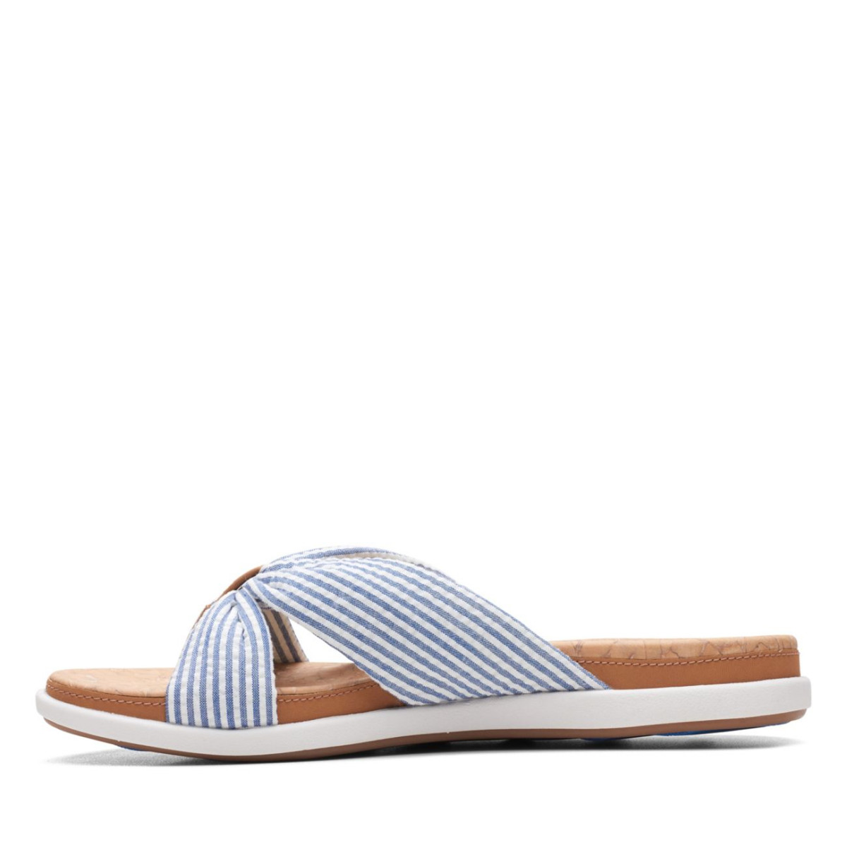 Enjoy summer soirees and beachy days in fresh and fun blue canvas slide sandal Eliza Shore. Feet feel light as a cloud all day long, thanks to super-soft EVA cushioning.