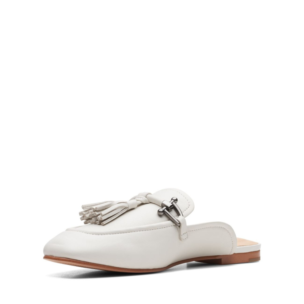 From a closed toe to slim heel, mule Pure 2 Trim is marked by sophistication. Its classic profile in supple, stitched white leather speaks to decades of Clarks heritage whilst tassel and buckle details add a contemporary touch. Perfect for light, elegant wear as the weather warms.